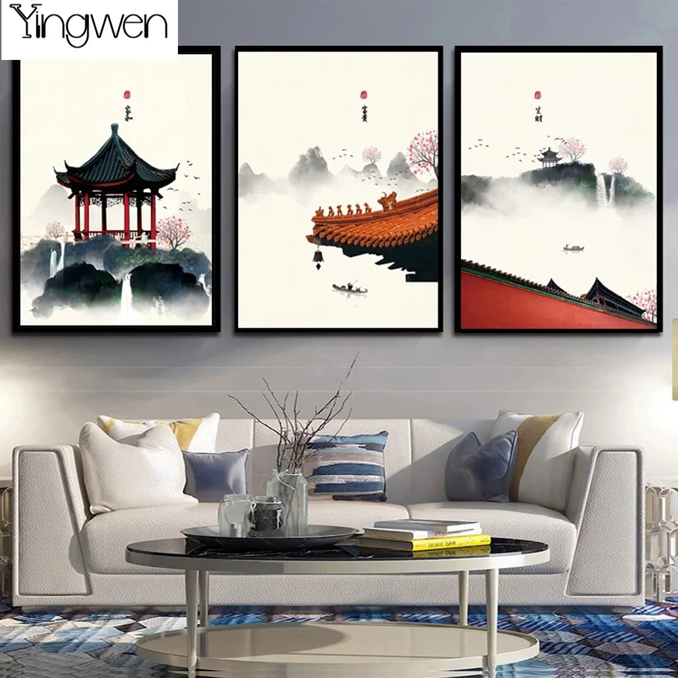 Алмазная живопись с изображением китайского дворца, настенное искусство, украшение, бриллиантовая вышивка, Набор для вышивки крестиком, Декор