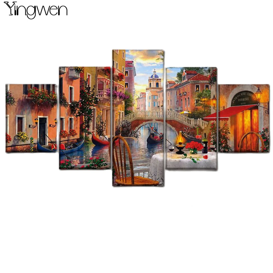 DIY 5D полная Алмазная Вышивка Венеция Ресторан абстрактная итальянская Алмазная Картина Вышивка крестом Стразы Алмазная мозаика 5 панелей