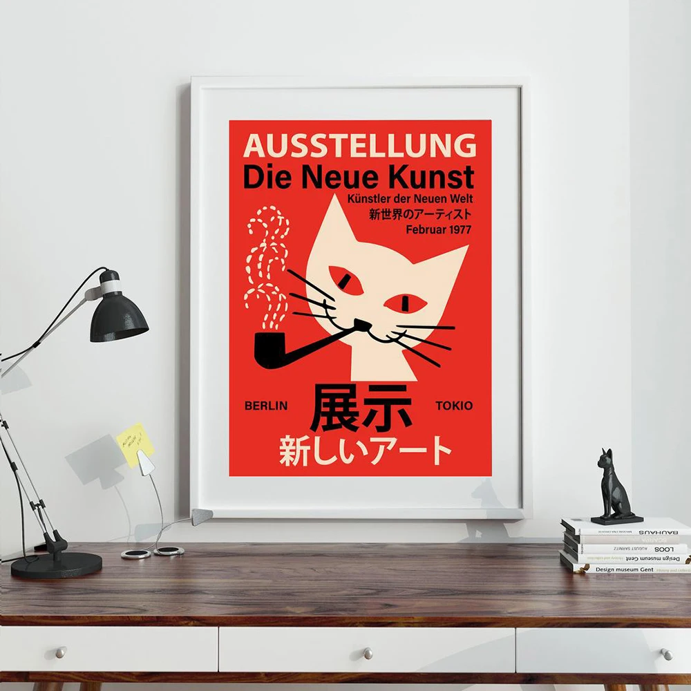 Японская живопись на холсте для путешествий, кошка, минималистичный...