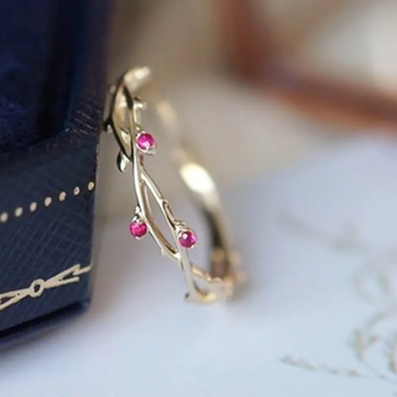 Милое мини-кольцо с изображением травы, аксессуары с маленькими красными цветами и камнями, золотистая повязка для женщин, украшение для пальцев, бижутерия