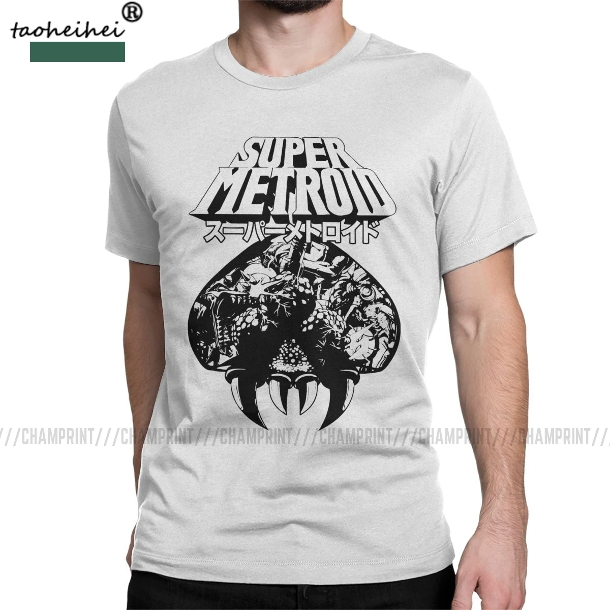 Футболка мужская с надписью Super Metroid, хлопковая тенниска с кор...
