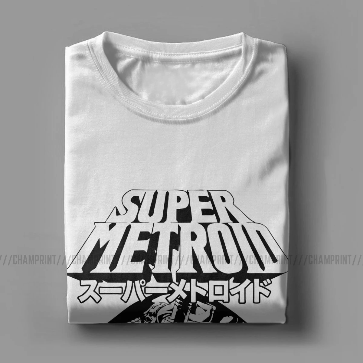 Супер Metroid мужские футболки Самус Wars Аран Prime Snes Выбеленны...