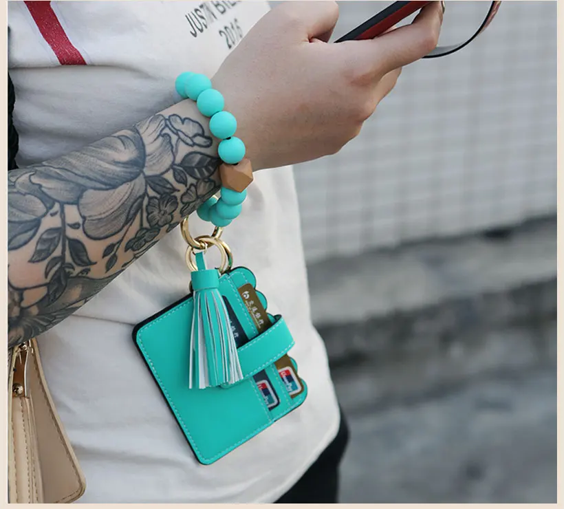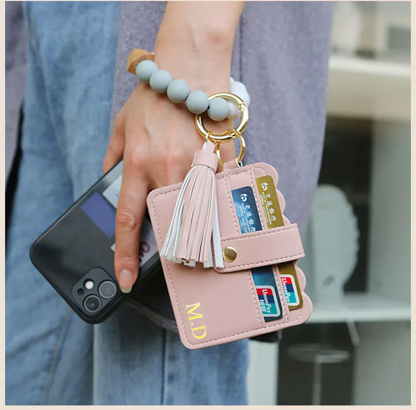Силиконовая цепочка с ремешком на запястье для женщин, кошелек, брелок, Карманный Кошелек, брелок для ключей с кисточкой
