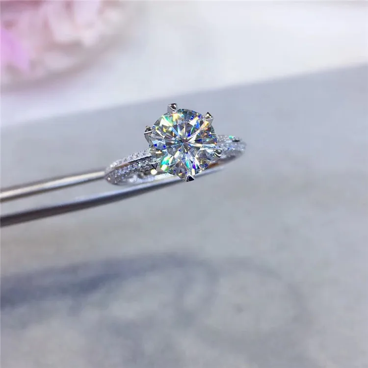 925 пробы серебро прошел алмаз Тесты идеально Муассанит 1ct кольцо ...