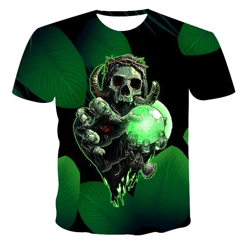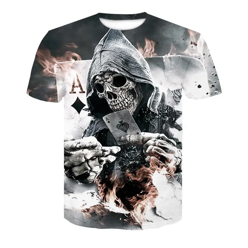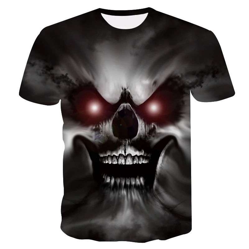 Футболка мужская летняя с 3d-изображением злых черепов, модная крутая с принтом ужасов, с графическим принтом, в стиле хип-хоп, уличная одежда в стиле Харадзюку
