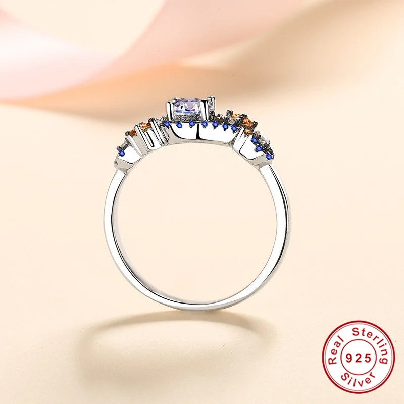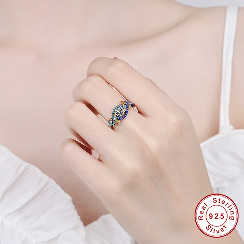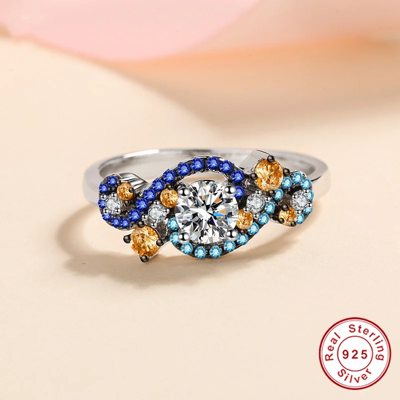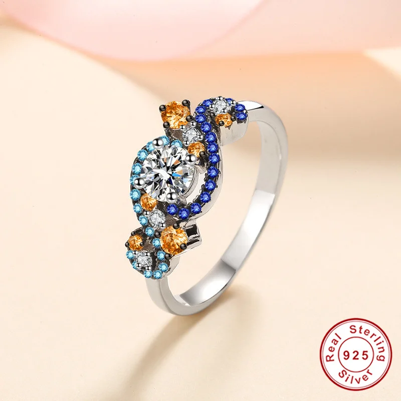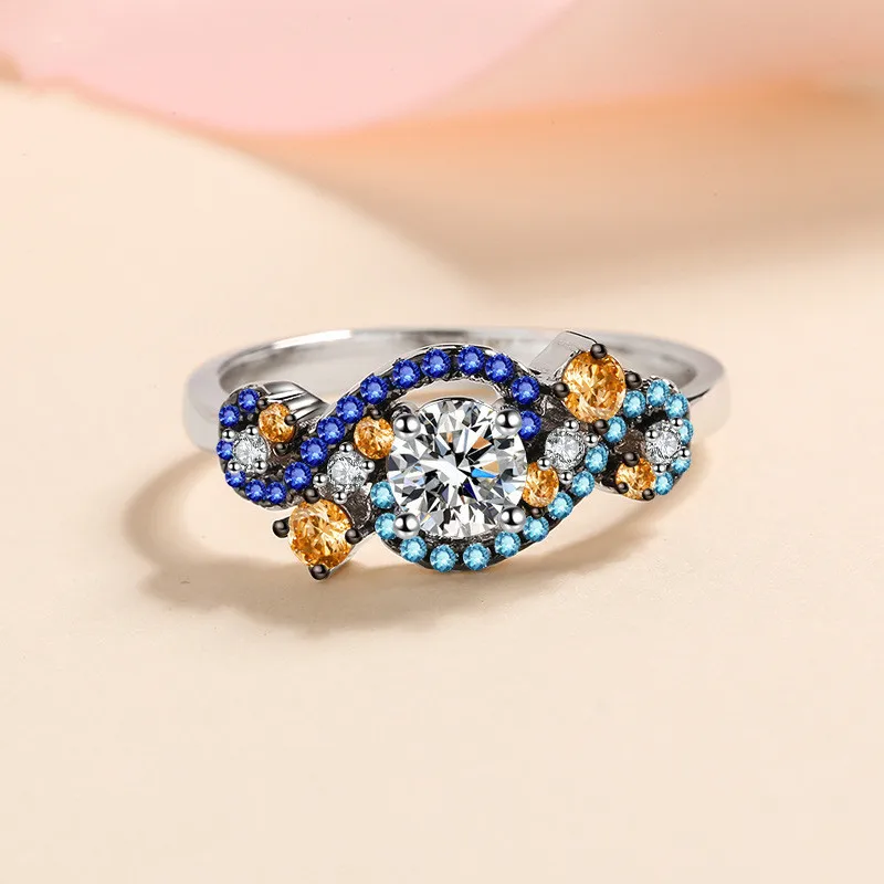 Кольцо Geoki из серебра 925 пробы, с синим и зеленым муассанитом