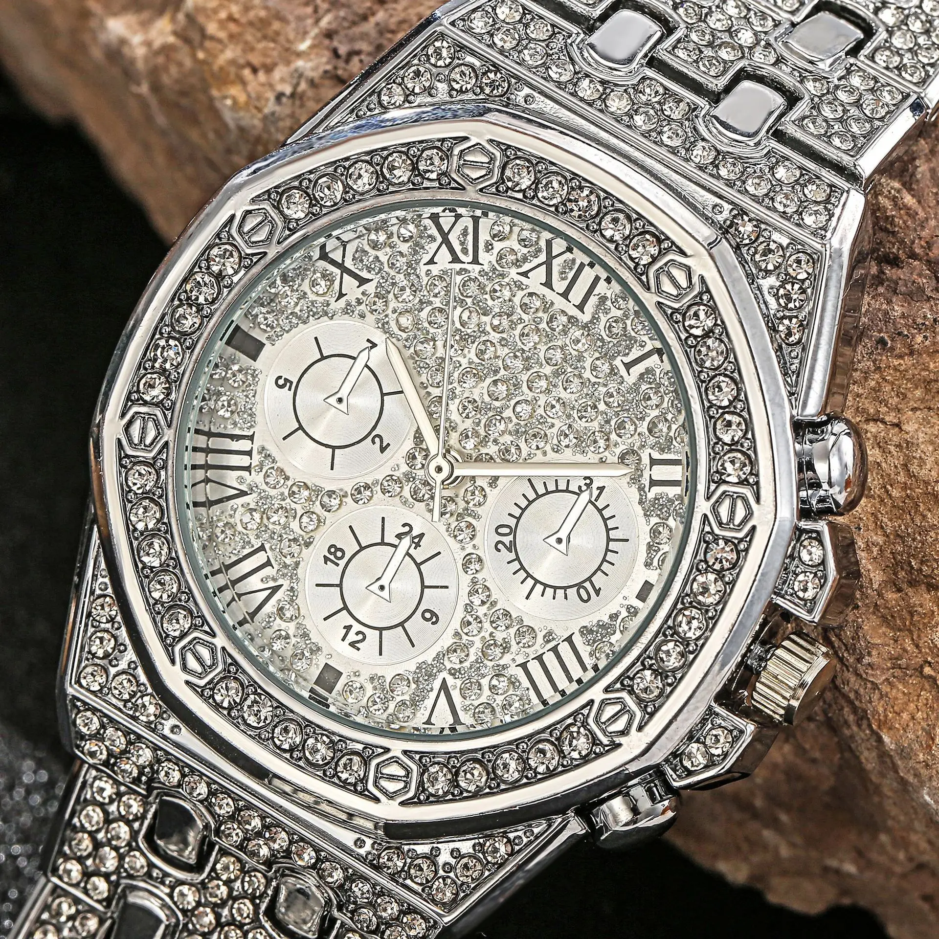 Полный льдом часы-браслет для мужчин со льдом часы модные кварцевые...