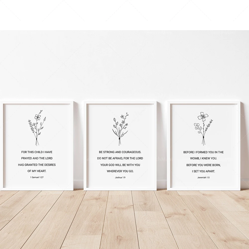 3 библейских стиха для детской комнаты, пищевое Писание для маленьких девочек, Be Strong joшуа 1:9, христианский Цветочный декор для детской комнаты