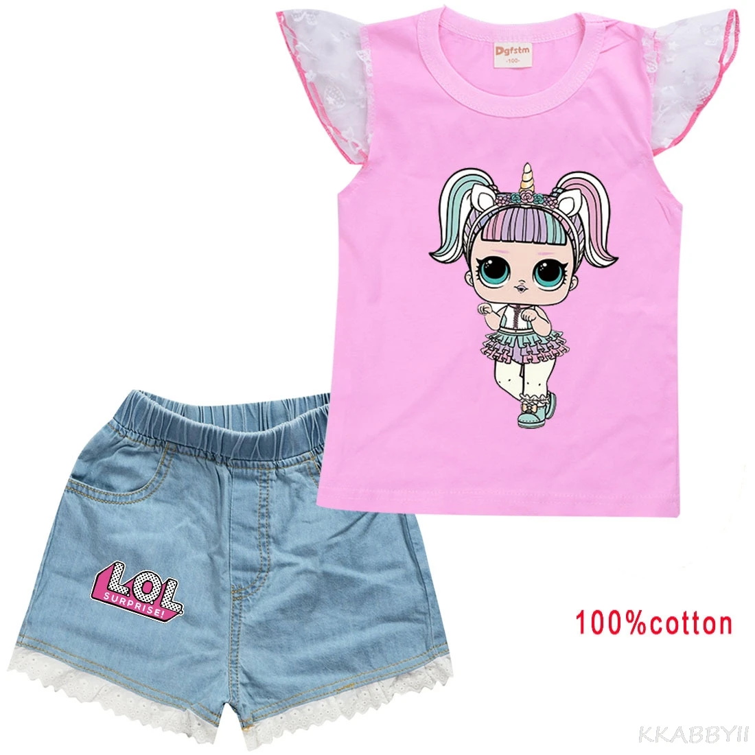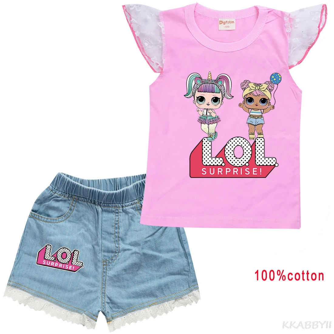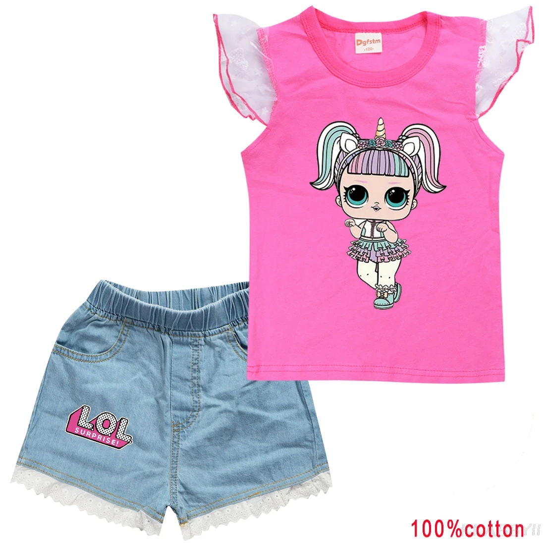 Летняя Милая летняя футболка с сюрпризом L.O.L + шорты, детский мультяшный костюм, Детский костюм