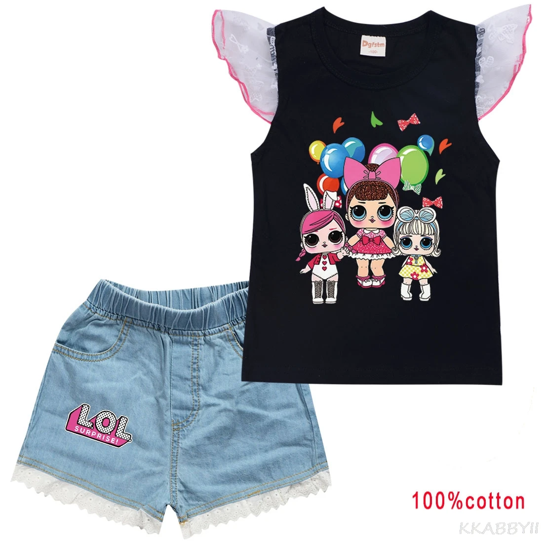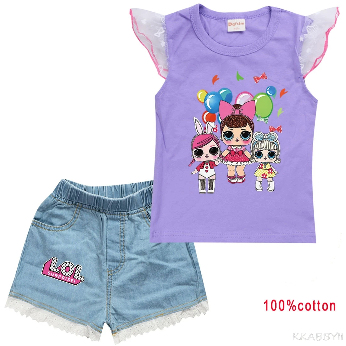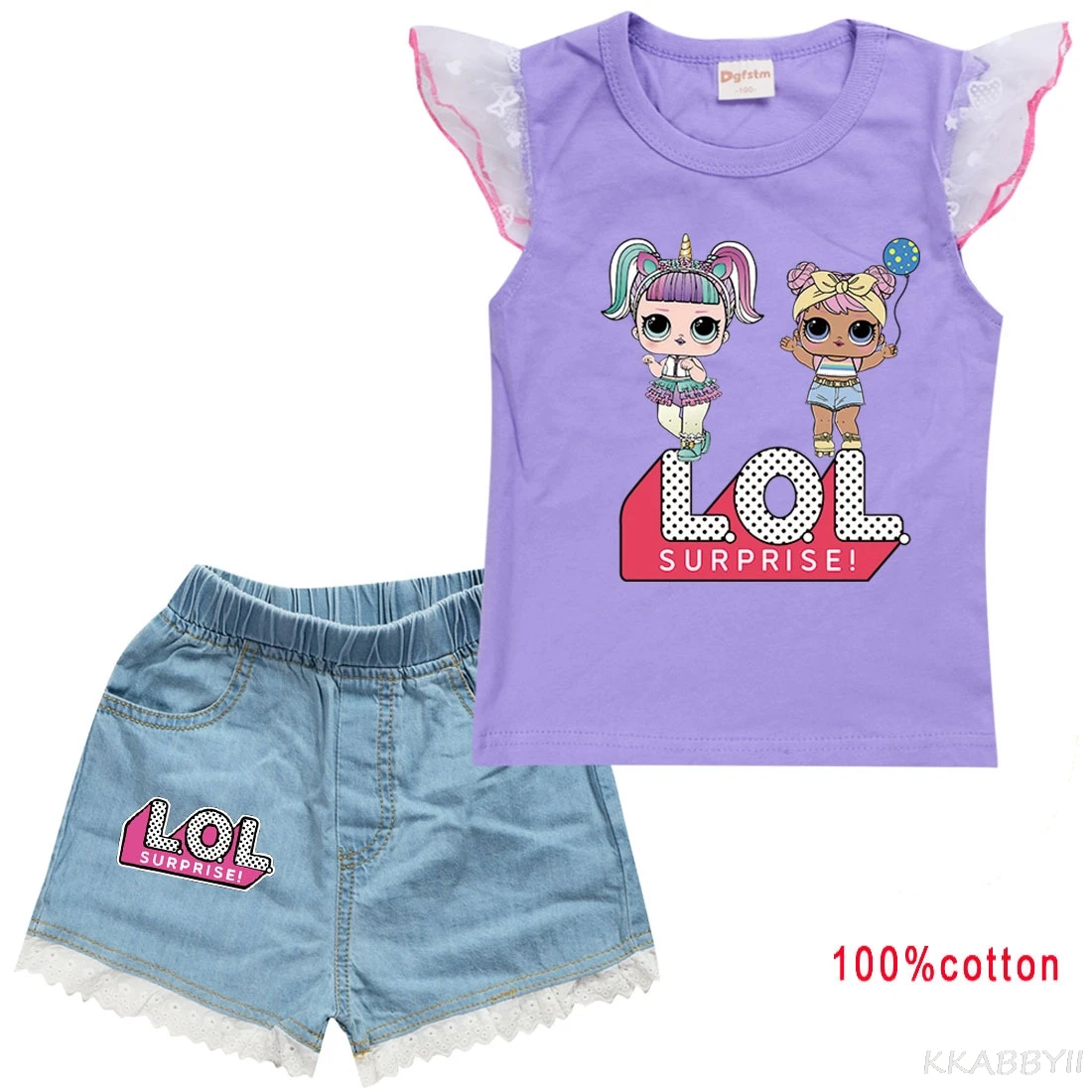 Летняя Милая летняя футболка с сюрпризом L.O.L + шорты, детский мультяшный костюм, Детский костюм