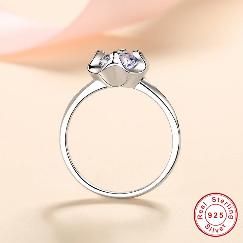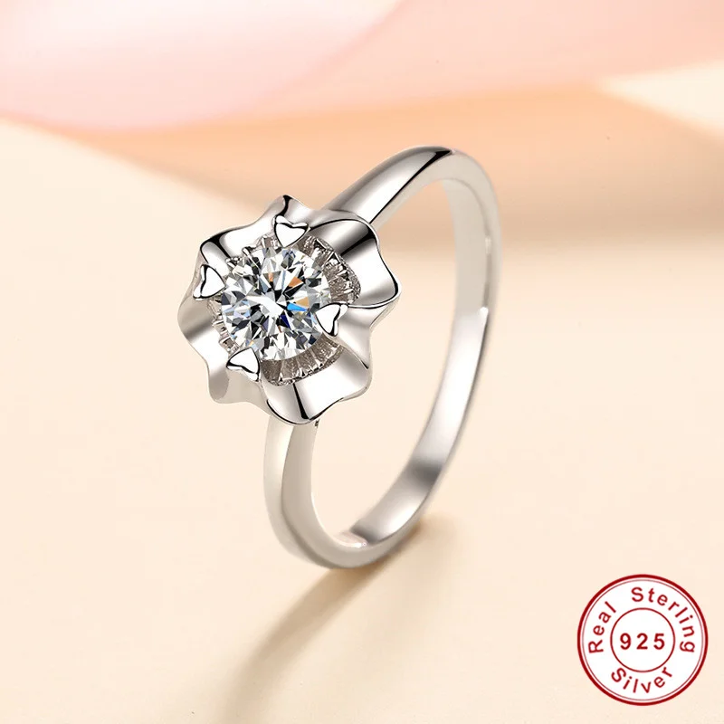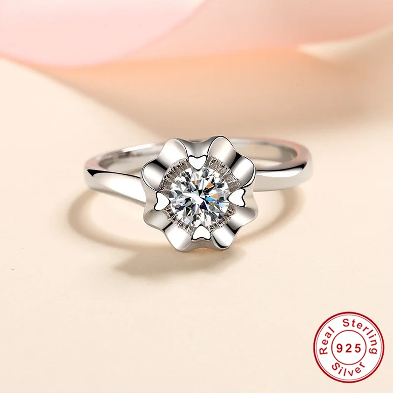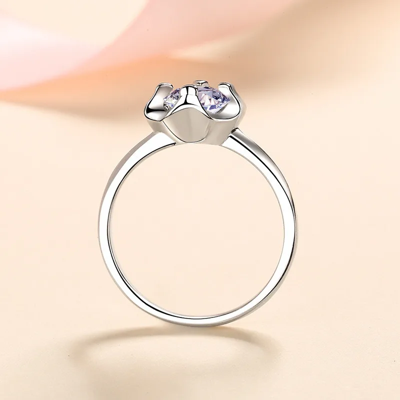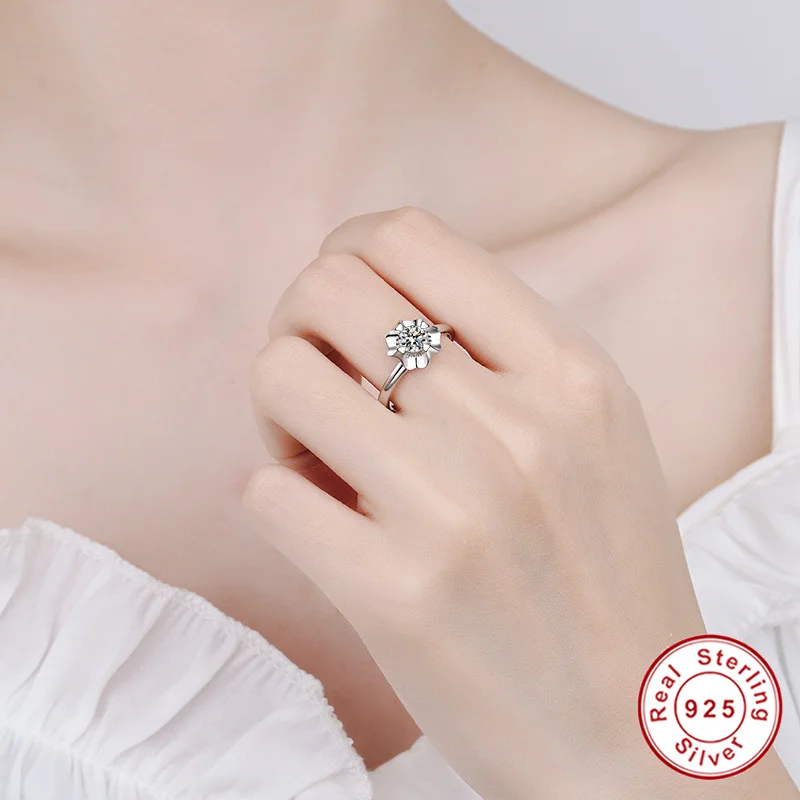 Geoki 925 пробы серебряный бриллиант прошел тест 0,5 Ct идеальная огранка D Цвет VVS1 Муассанит Любовь цветок кольцо Роскошные ювелирные изделия для вечеринок