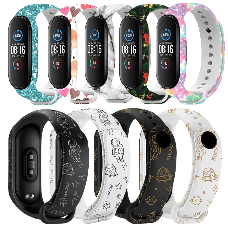Цветастое печатание ремешок для Xiaomi Mi Band 6 5 4 3 Смарт-часы м...