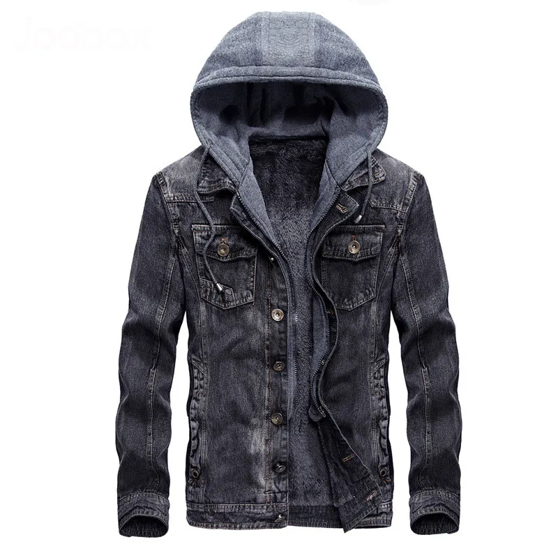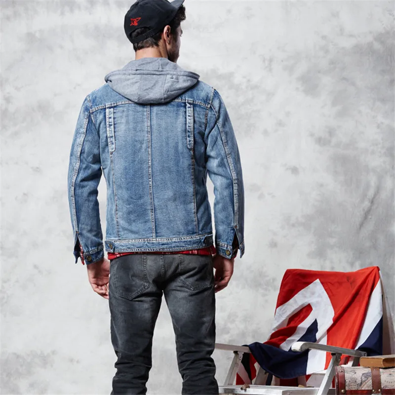 Мужская джинсовая куртка с капюшоном, модное зимнее джинсовое пальт...