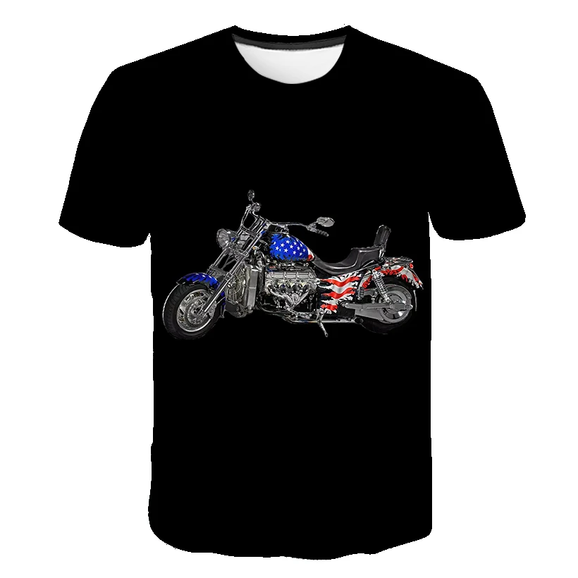 Летняя мужская футболка с коротким рукавом и 3D фотографией мотоцик...