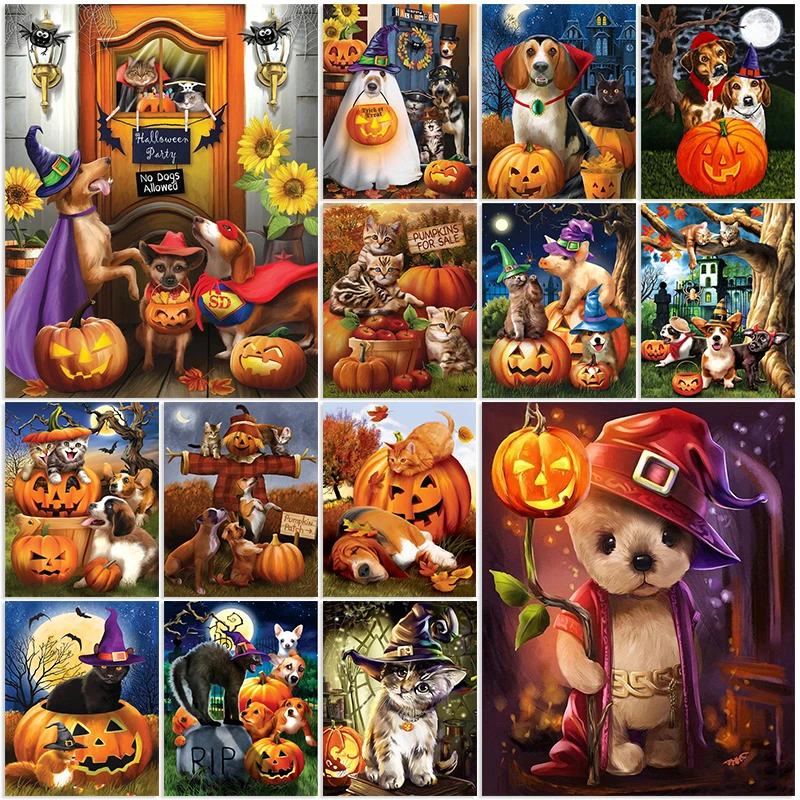 Алмазная живопись 5D с животными, кошками, собаками, новинка, алмазная вышивка сделай сам, тыква, мозаика для Хэллоуина, вышивка крестиком, праздничный подарок, украшение для дома