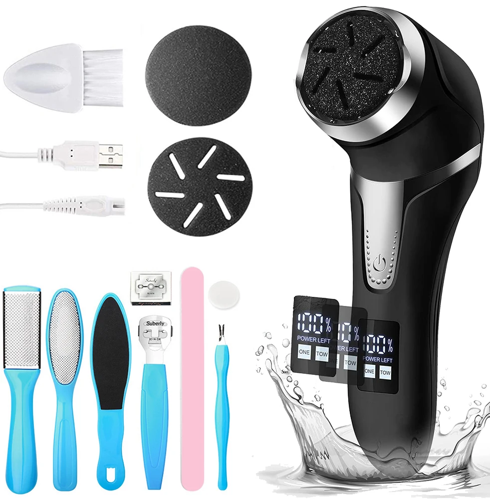 Электрическая пилка для ног прибор для удаления мозолей, набор из 3 шлифовальных насадок и 8 инструментов для педикюра для потрескавшейся пяток и омертвевшей кожи