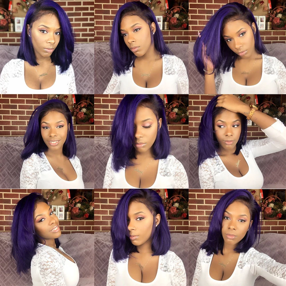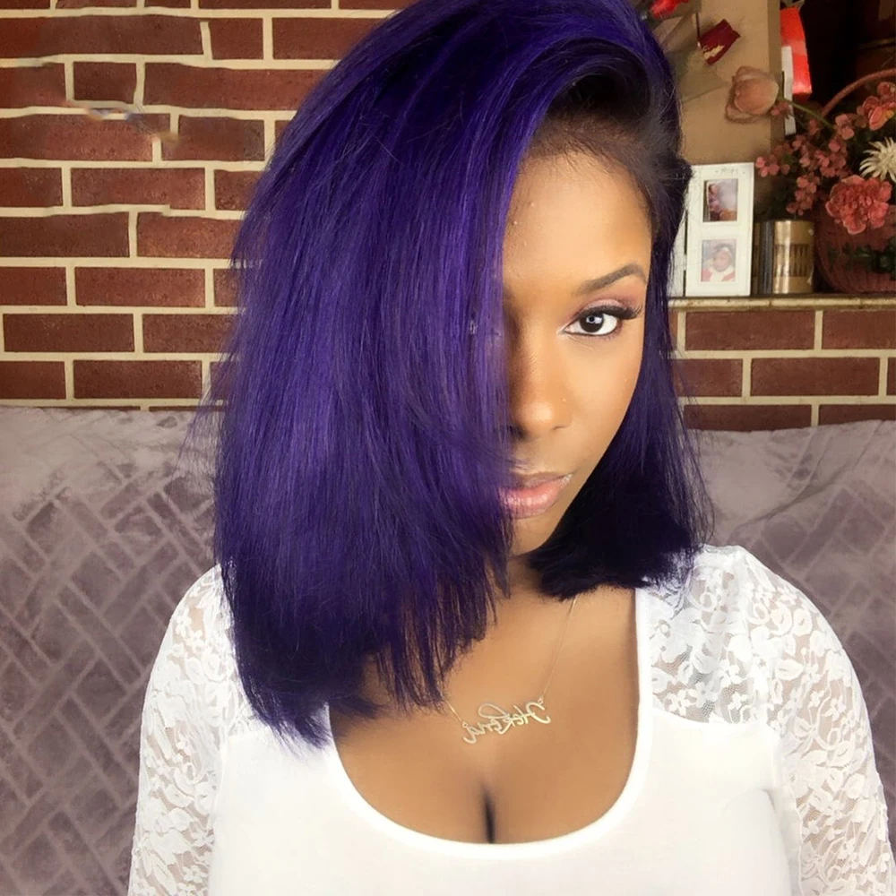 1B фиолетовые человеческие волосы, Боб, парики, Омбре, кружевные человеческие волосы, парики для черных женщин, предварительно выщипанная плотность 180%, Remy T, Фиолетовый парик на сетке