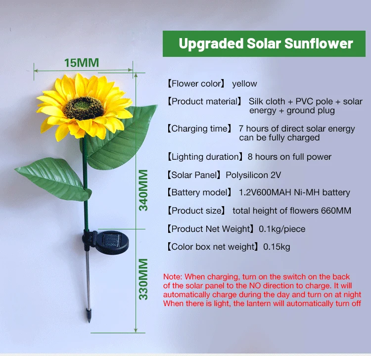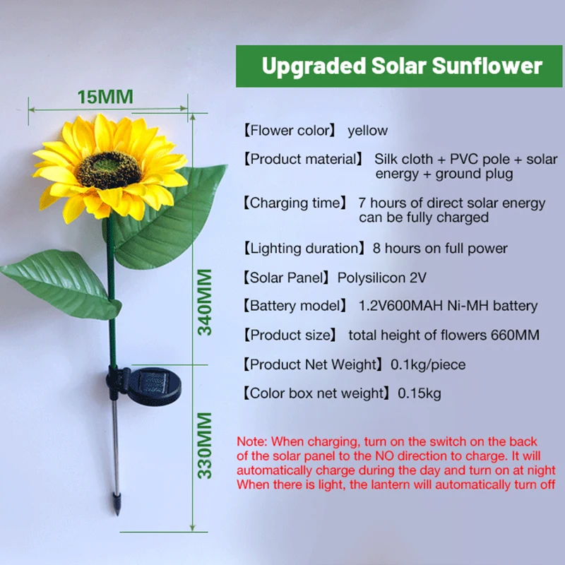 Садовый светильник s, Солнечный светодиодный светильник, водонепроницаемый Подсолнух, лужайка, светильник для двора, садовое украшение, уличный ландшафтный светильник