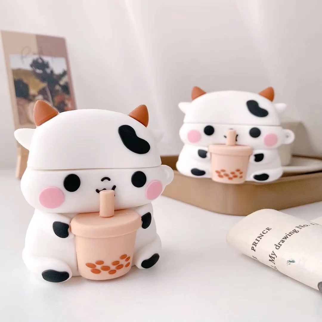 Чехол 3D Boba Cow Cartoon для AirPods Pro 1 2 3, беспроводная искусственная Обложка, чехол для Airpods 2, чехол с зарядным устройством
