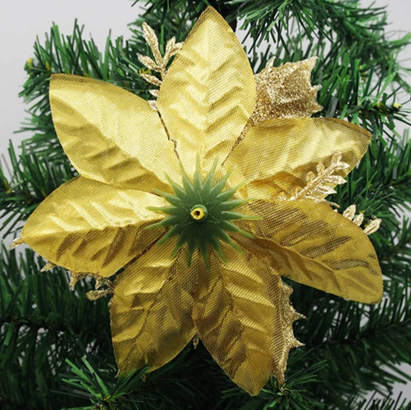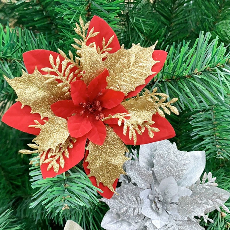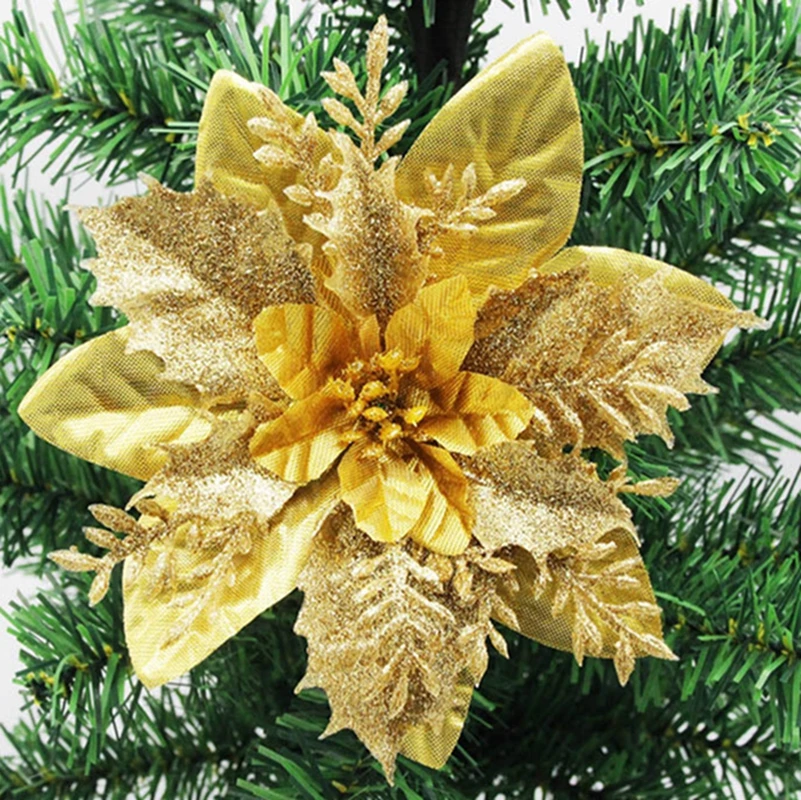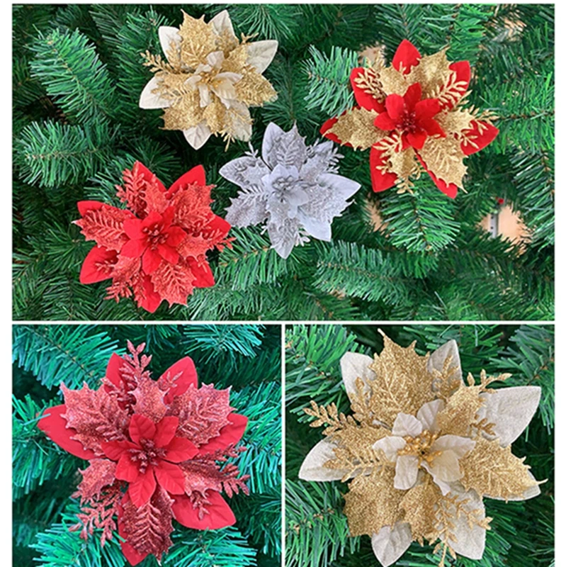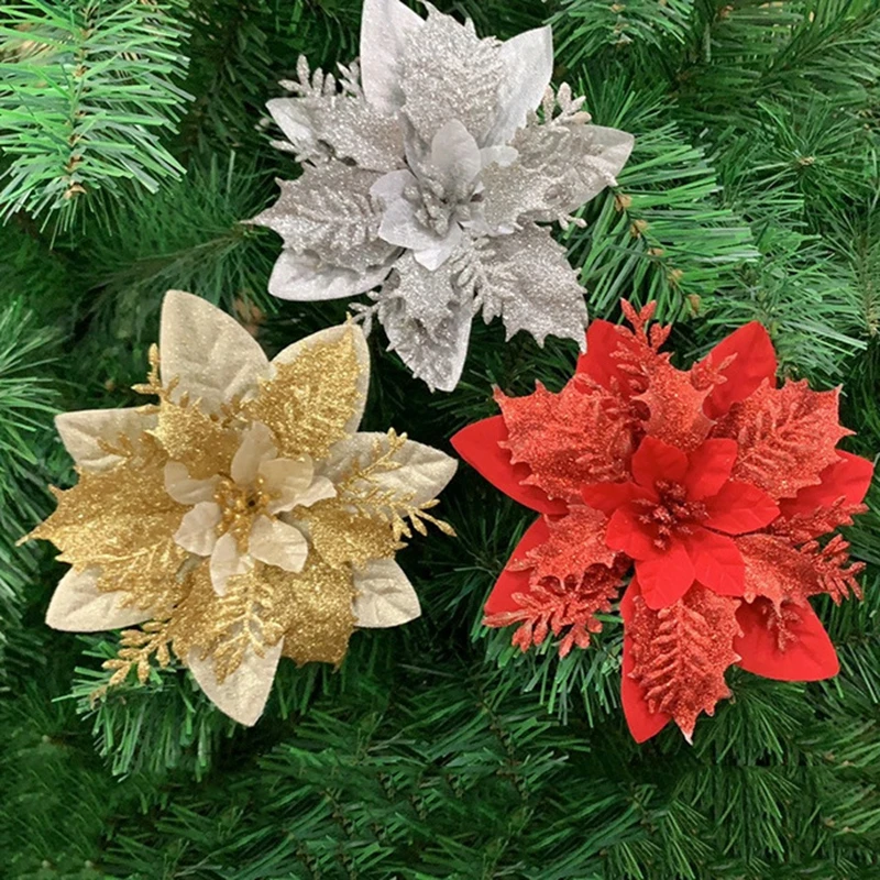 5 шт. блестящие Искусственные Рождественские цветы Рождественская елка украшения Счастливого Рождества Свадьба Новый год 2022 домашний декорКоличество:5 шт.