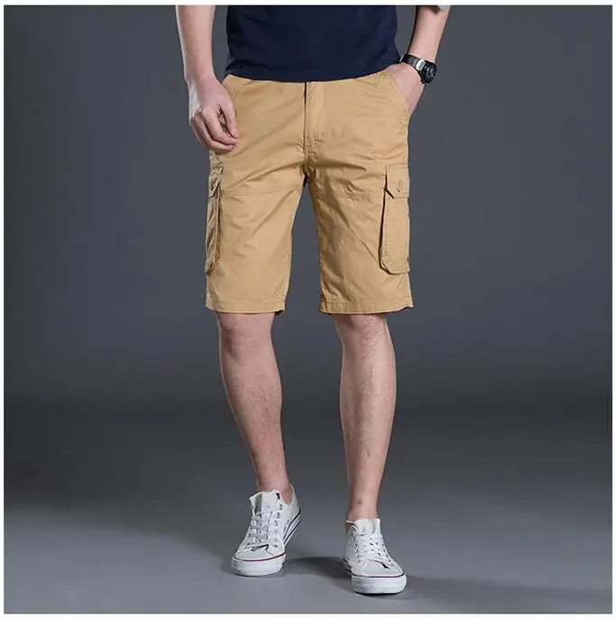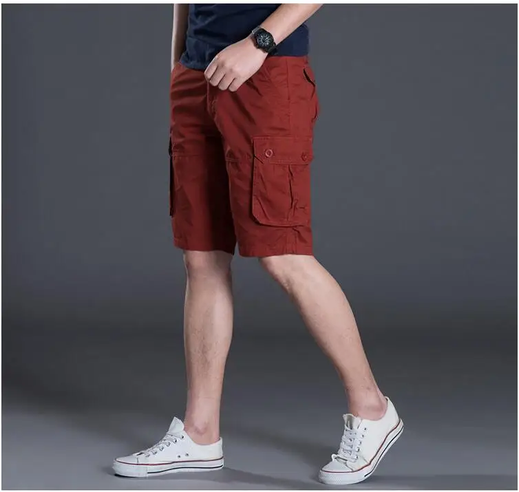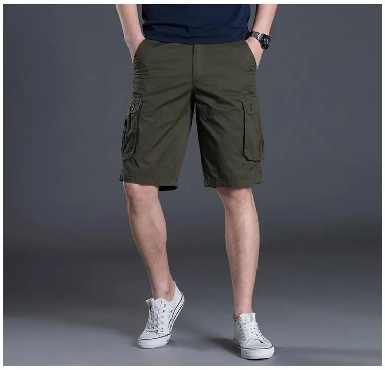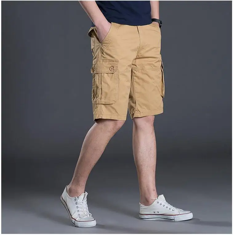 Мужские летние шорты-карго, хлопковые свободные бриджи, бермуды, повседневные короткие штаны до колен, социальные комбинезоны, шорты-Карго