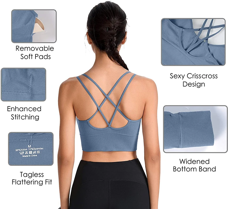 Топ женский спортивный на бретельках, майка со встроенным бюстгальтером для тренировок, без косточек, укороченный топ с мягкими чашечками для спортзала, бега, йоги, фитнеса и танцев