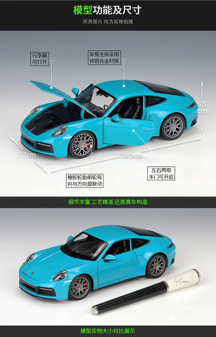 Литая под давлением модель автомобиля Carrera 911, металлическая модель автомобиля, игрушечный автомобиль из сплава, спортивный автомобиль для детей, коллекция подарков