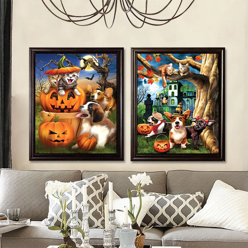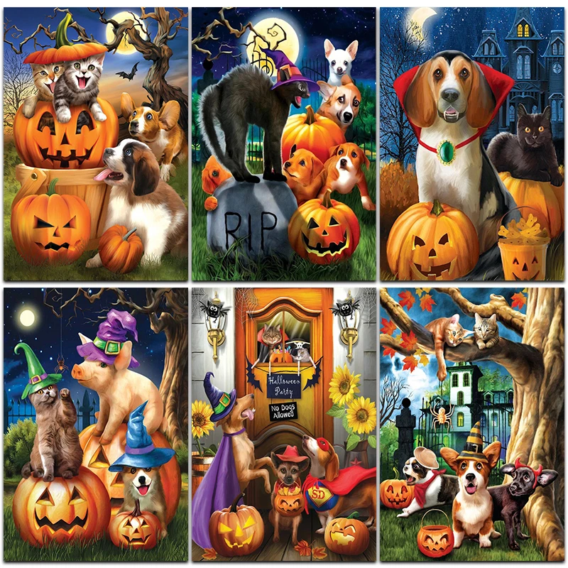 Алмазная 5D мозаика сделай сам, картина с рисунком кошки и собаки, мозаика для Хэллоуина, домашний декор