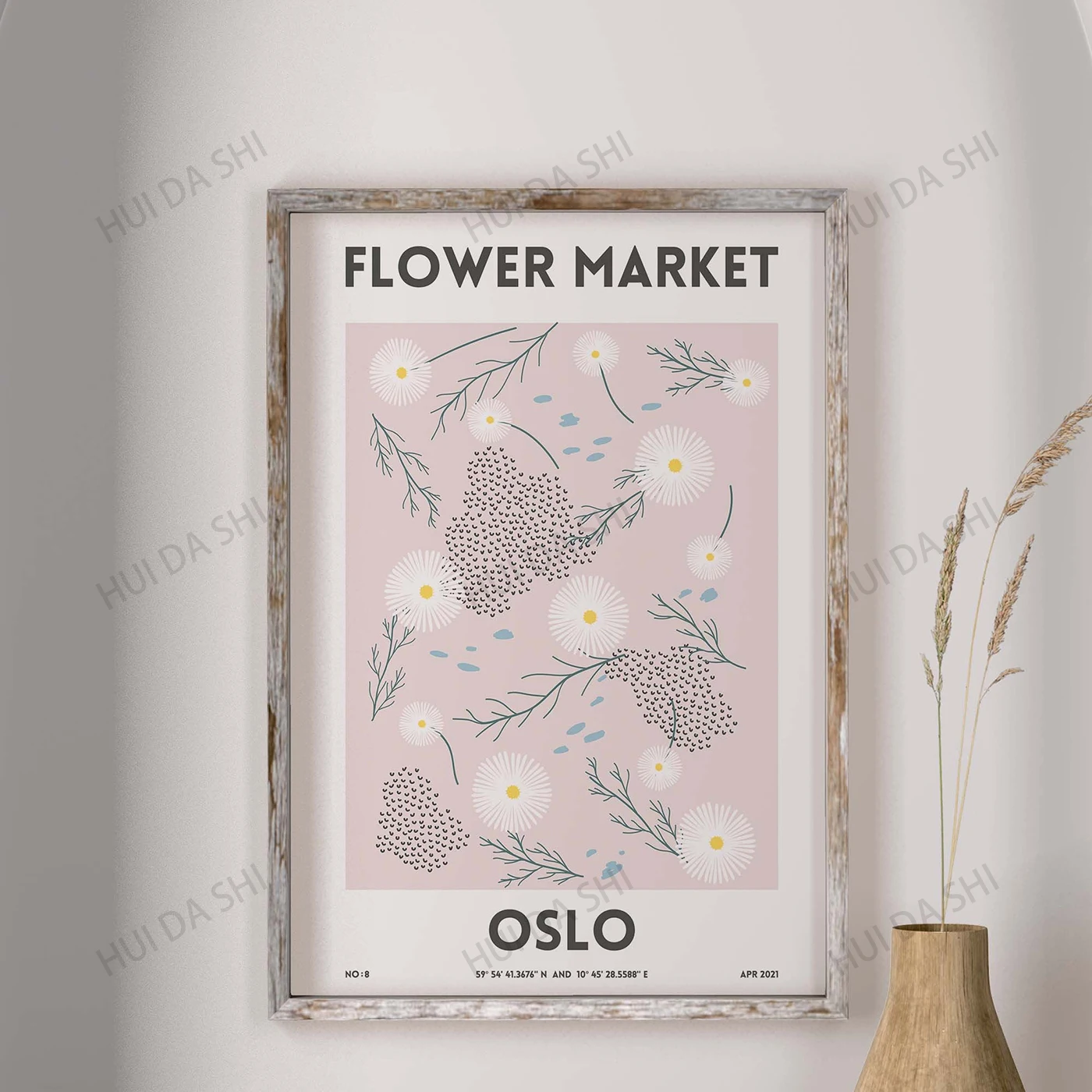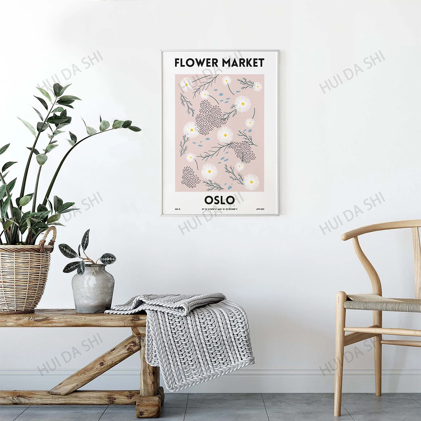 Цветочный рынок-Осло, абстрактная Маргаритка, розовый-белый-зеленый, печатный французский Настенный декор, цифровая загрузка