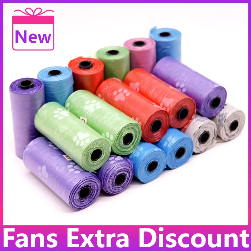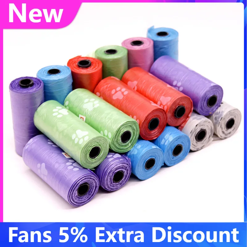 1 рулон, новый мешок для собак с принтом лап, 15 мешков/рулон, большие мусорные мешки для кошек, собачий мешок для очистки дома, мусорный мешок