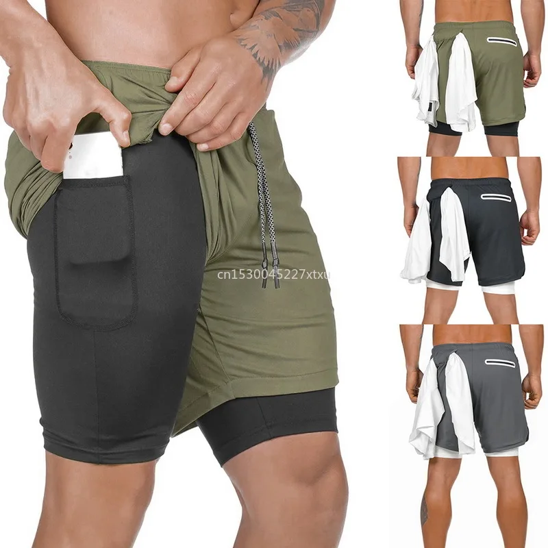 Летние шорты для бега, мужские Модные шорты 2 в 1, спортивные шорты...