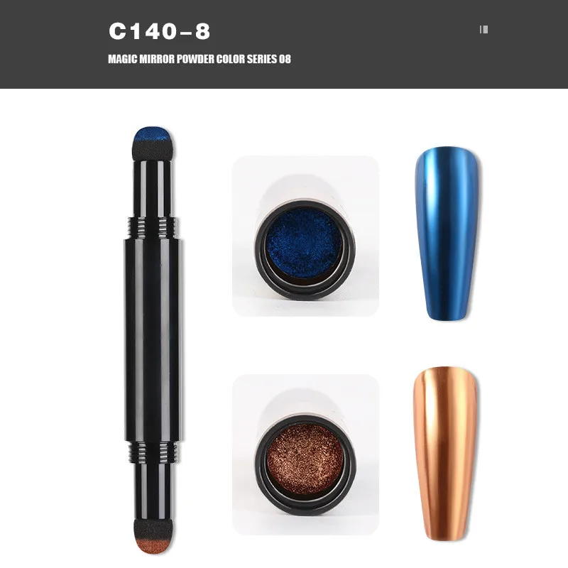 Зеркальный эффект1. Нанесите Базовое покрытие на ногти и закрепите его под светодиодный/УФ-лампой.2. Нанесите цветное покрытие на ногти и высушите его под светодиодный/УФ-лампой.3. Нанесите верхнее покрытие на ногти и высушите его под светодиодный/УФ-лампой.4. Нанесите его на ногти.5. Запечатать его с верхним пальто, высушить его под светодиодный/УФ-лампойМерцающий эффект1. Нанесите Базовое покрытие на ногти и закрепите его под светодиодный/УФ-лампой.2. Нанесите цветное покрытие на ногти и высушите его под светодиодный/УФ-лампой.3. Не вытирайте УФ верхнее покрытие и порошок равномерно и нанесите его на ногти.4. Высушите его под светодиодный/УФ-лампой.