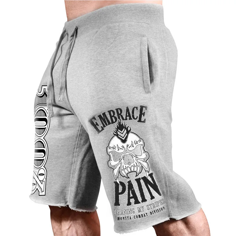 Мужские летние свободные хлопковые шорты с принтом, повседневные шорты для фитнеса, тренировок, тренажерного зала, спортивные шорты для бега, шорты длиной до колена, мужские шорты