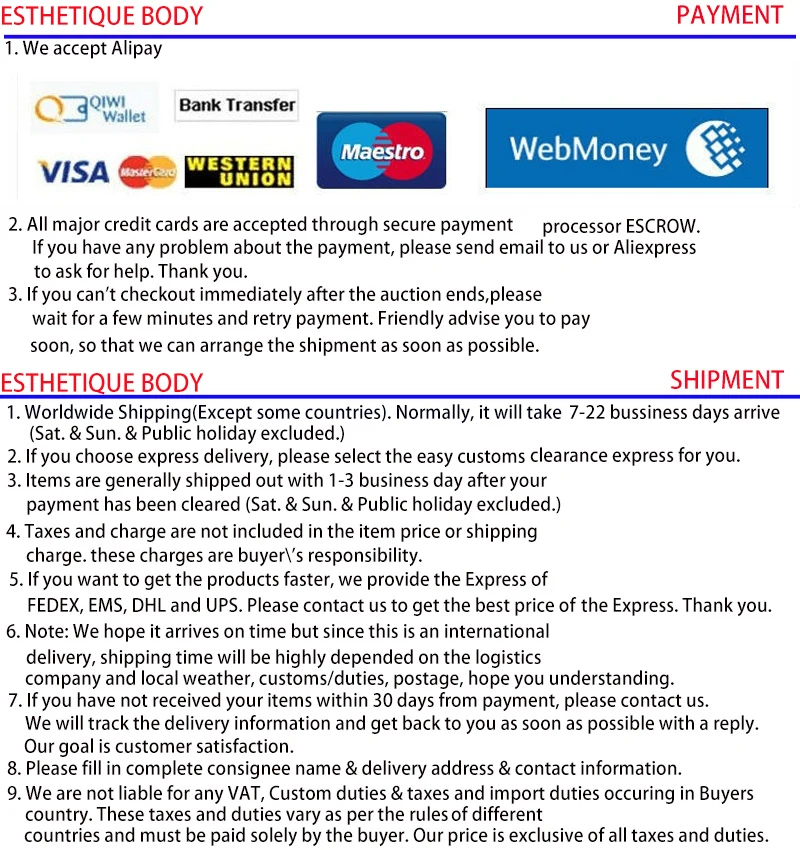 Как измеряется вручную; Погрешности могут составлять 1-3 см разницу допускается (1 см = 0,39 дюйма) Разные компьютеры могут отображать разные цвета, даже если они одного цвета. Пожалуйста, учитывайте разумную разницу в цвете Обычно мы можем отправить ваш заказ в течение 3-5 дней после оплаты, если нет, пожалуйста, свяжитесь с нами, чтобы проверить проблему. 1. Пожалуйста, убедитесь, что вы написали правильную контактную информацию, включая (Контактное имя, Адрес, номер телефона, почтовый индекс и формат), чтобы вы могли получить ваш заказ плавно 2. Мы настоятельно рекомендуем вам выбрать способ доставки, который вы можете отслеживать, потому что есть Десятки миллионов упаковок каждый день, и отслеживаемые методы доставки могут помочь вам отслеживать и получать Ваши заказы в безопасности 3. Если вы хотите заказать другой продукт, пожалуйста, выберите «Добавить в корзину» после выбора продукта и оплатите его вместе 4. Если вы хотите купить больше, пожалуйста, свяжитесь с нами, и мы предоставим вам лучшую цену
