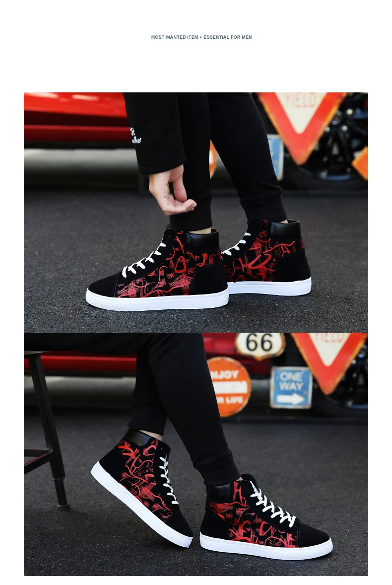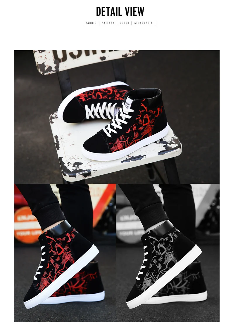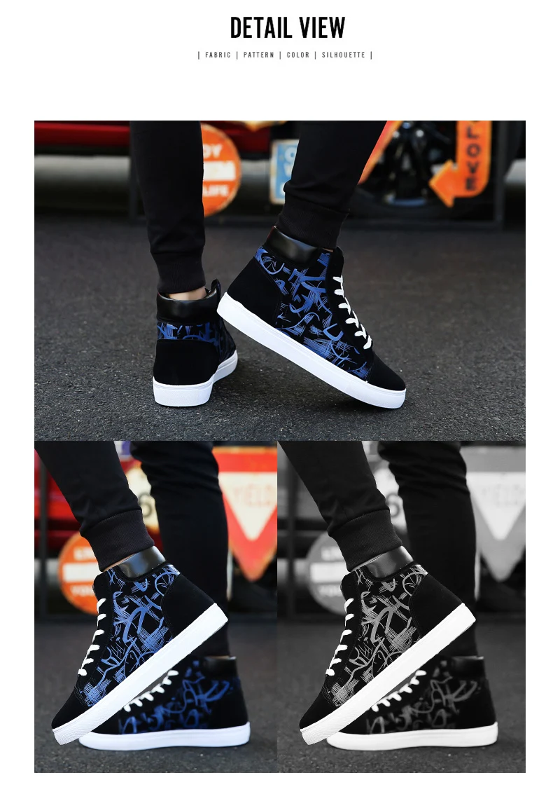 Кроссовки мужские высокие, Вулканизированная подошва, Нескользящие, массивные, модная обувь, текстильные кеды, 2020
