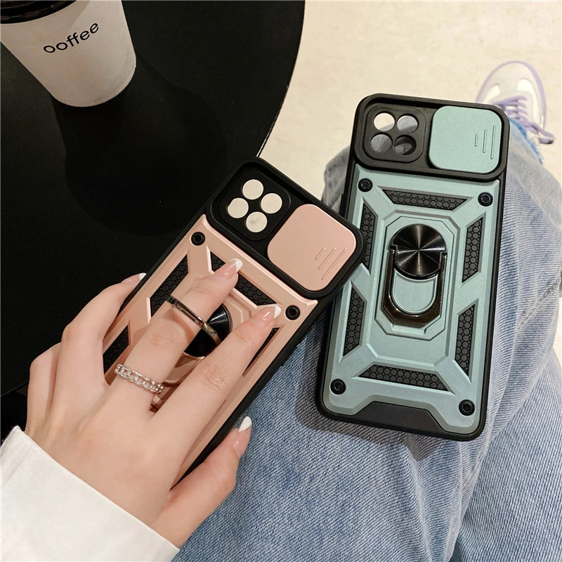 Слайд камера защита объектива Магнитная подставка бронированный противоударный чехол для OPPO A93 F17 Pro Reno 4 Lite Realme 8 Pro защитный чехол