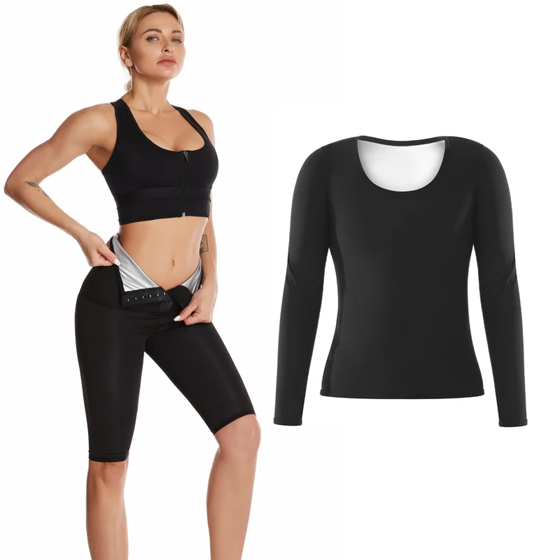 Женские Тренировочные штаны-сауна, утягивающая рубашка для похудения, комплект утягивающего белья, тренажер талии, утягивающие живот, леггинсы для фитнеса, тренировочный костюм