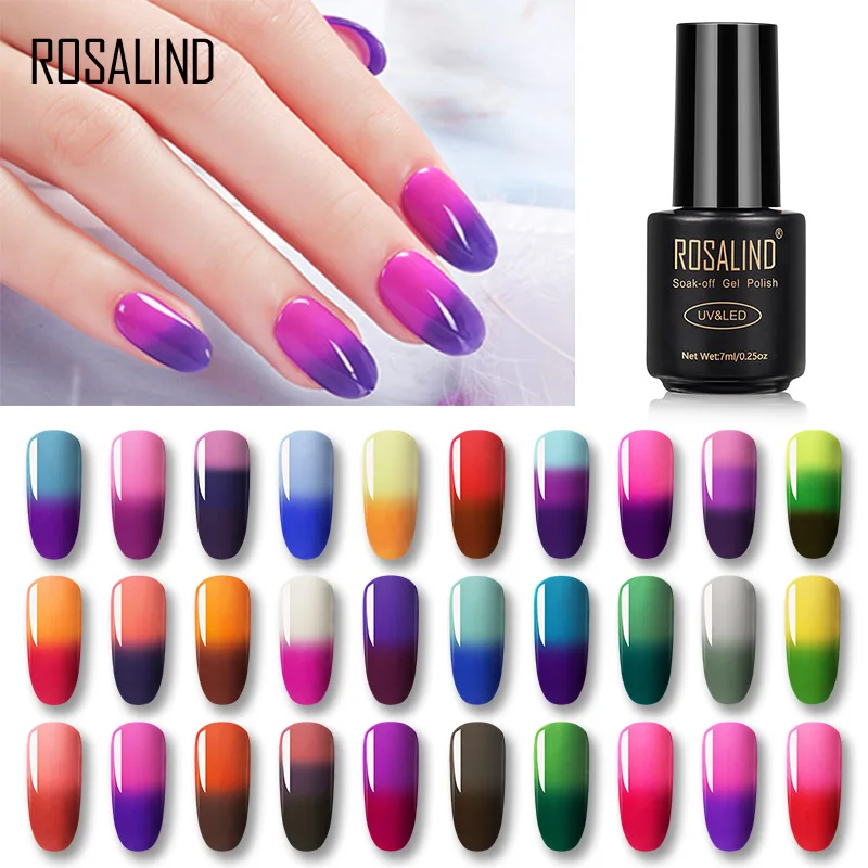 Термальный Гель-лак для ногтей ROSALIND, меняющий цвет при температуре, блестящий Полупостоянный лак для маникюра, блестящий УФ-гель, лаки для ногтей, наклейки на ногти, гель лак для ногтей, накладные ногти,