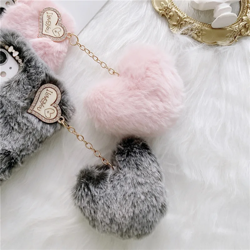 3D чехол с подвеской в виде сердца из радужного кроличьего меха для...