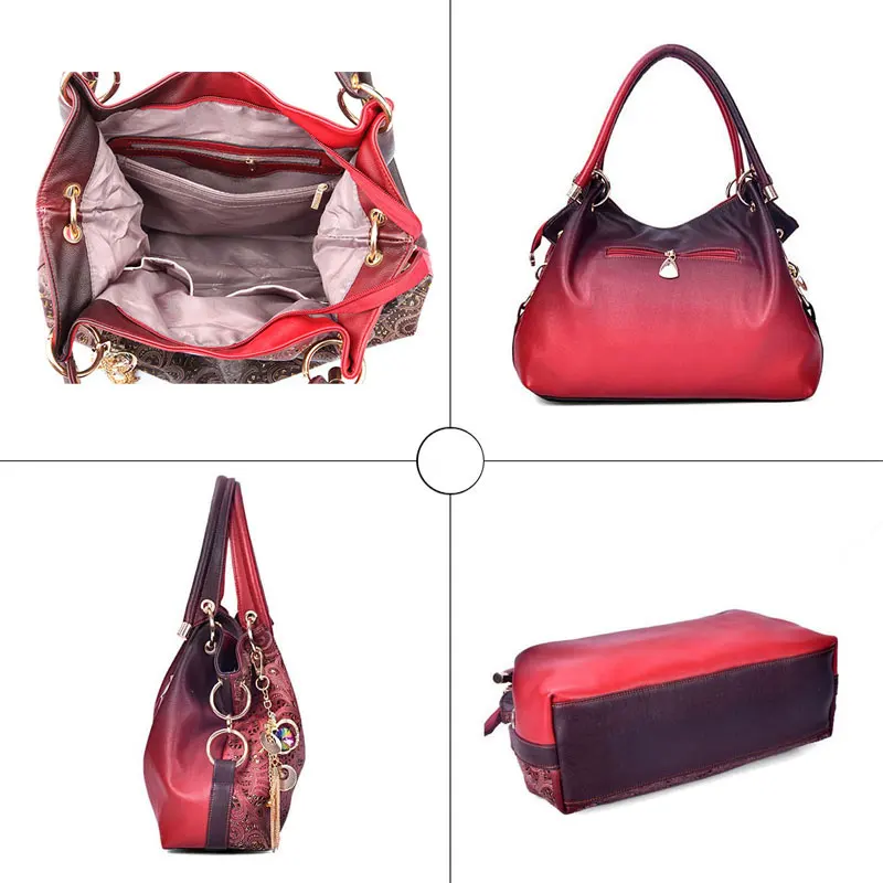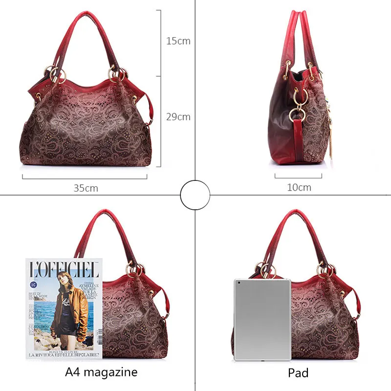Дамские сумочки с верхними ручками, ажурный кожаный саквояж омбре с...