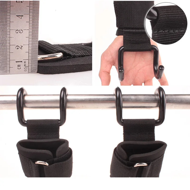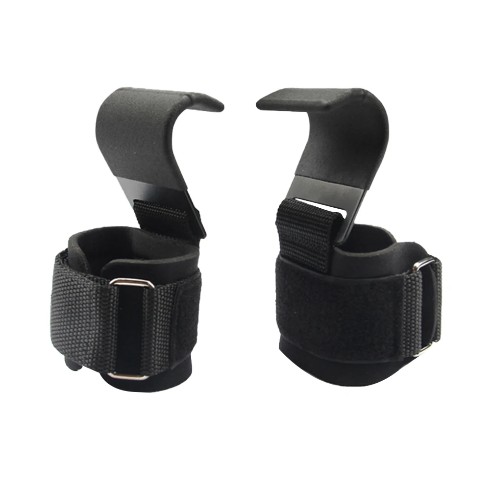 Это пара подъемных крючков, которые сделаны из чугуна, с слоем, обернутым армированной фрикционной тканью, безопасной в использовании. Регулируемая застежка на крючок и петлю подходит для запястья. Это снимает тяжелую нагрузку с пальцев, предотвращая усталость рук, переносит вес непосредственно на спину, плечи, руки и ловушки.
