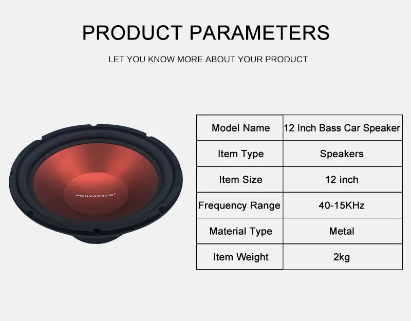 Автомобильный сабвуфер 12 дюймовРазмер: 12 дюймов для большей мощности!Уникальный дизайнКонус для инъекций с красным покрытием (может быть, красный цвет немного отличается от изображения)Поролоновая кромка без пресса бумажный конусный НЧ-динамикЧастотный диапазон: от 40 Гц до 7000 ГцЧувствительность: 93 дБ/Вт/мМагнит: 50 унцийЗвуковая катушка: 50 мм KSVМаксимальная мощность: 2500 ВтСоветы:Отгрузка: DHL ,TNT, Почта Китая воздушная посылка или экспресс-курьер. Это определяется продавцом без уведомления.Посылка: стандартная коробка.Полное отсутствие искажений, очень хороший звук для прослушивания музыки.Сделай Сам для вождения собственного автомобиля! Посылка: 1 шт. * 12 дюймов автомобильный сабвуфер