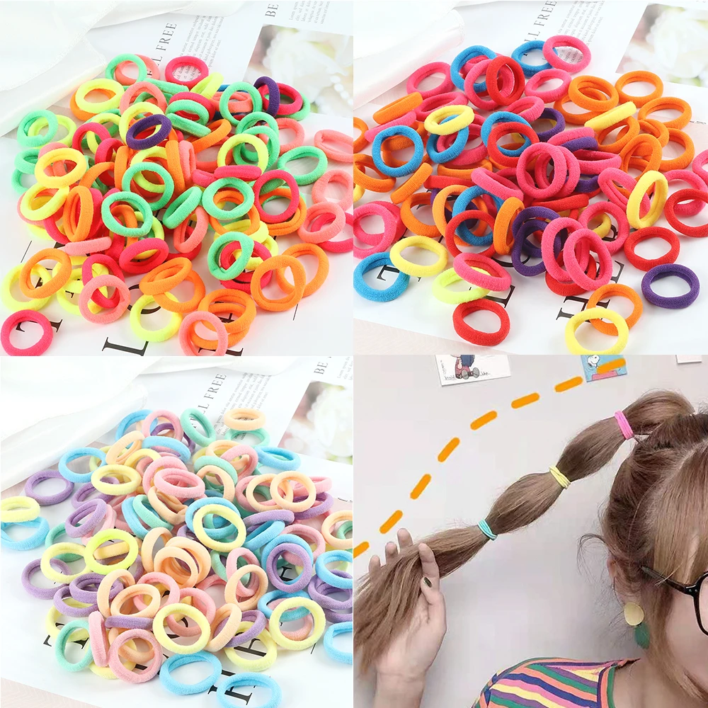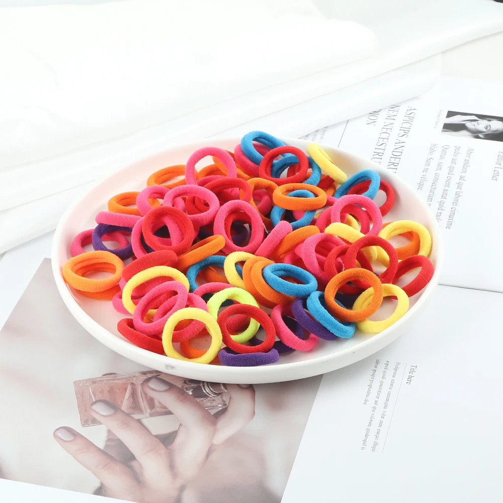 100 шт./компл. Радужная флуоресцентная цветная веревка для волос милые детские цветные нейлоновые маленькие эластичные резинки для волос держатель для хвоста