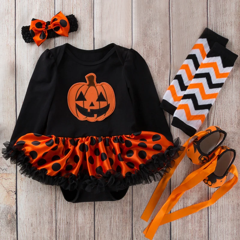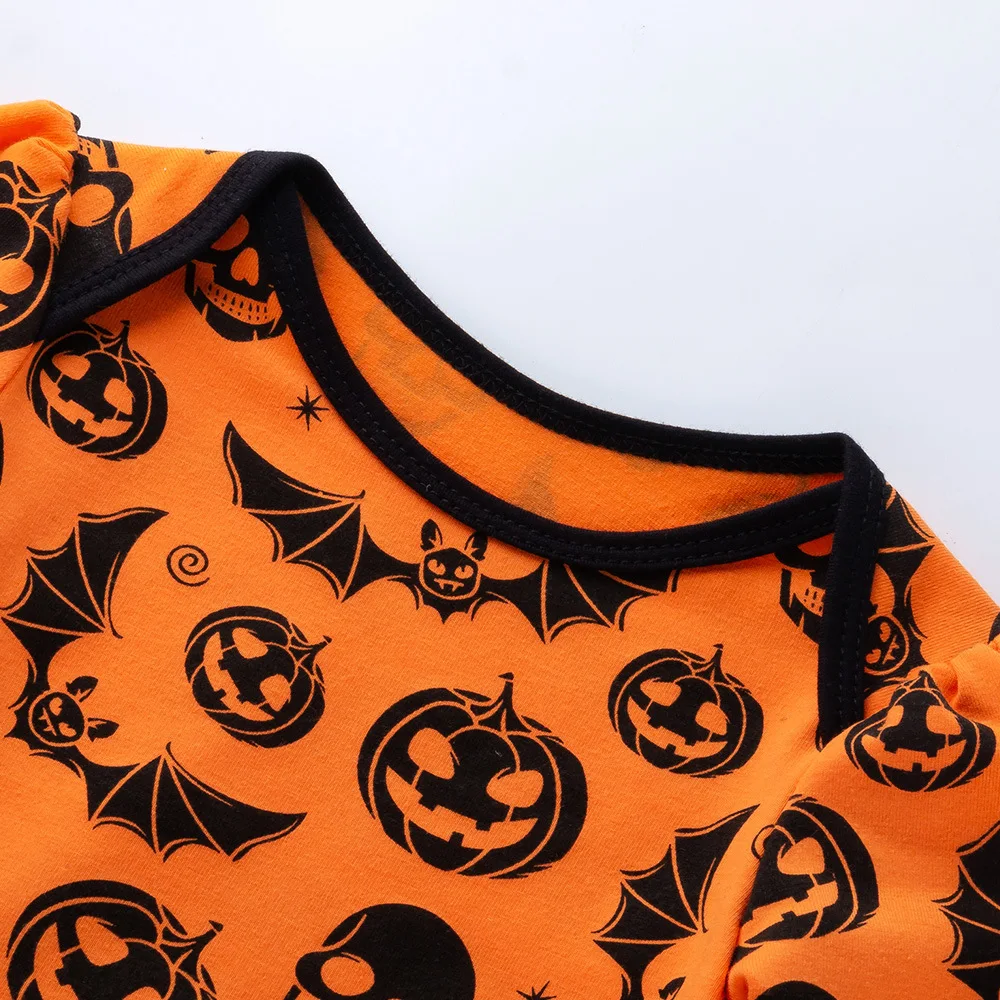Комбинезоны на Хэллоуин для маленьких девочек, комбинезон для маленьких девочек на Хэллоуин вечерние Одежда с пачкой и длинными рукавами, наряд с тыквой, комплект платья, одежда