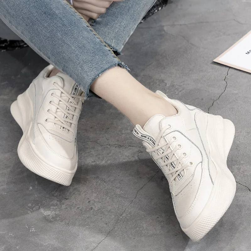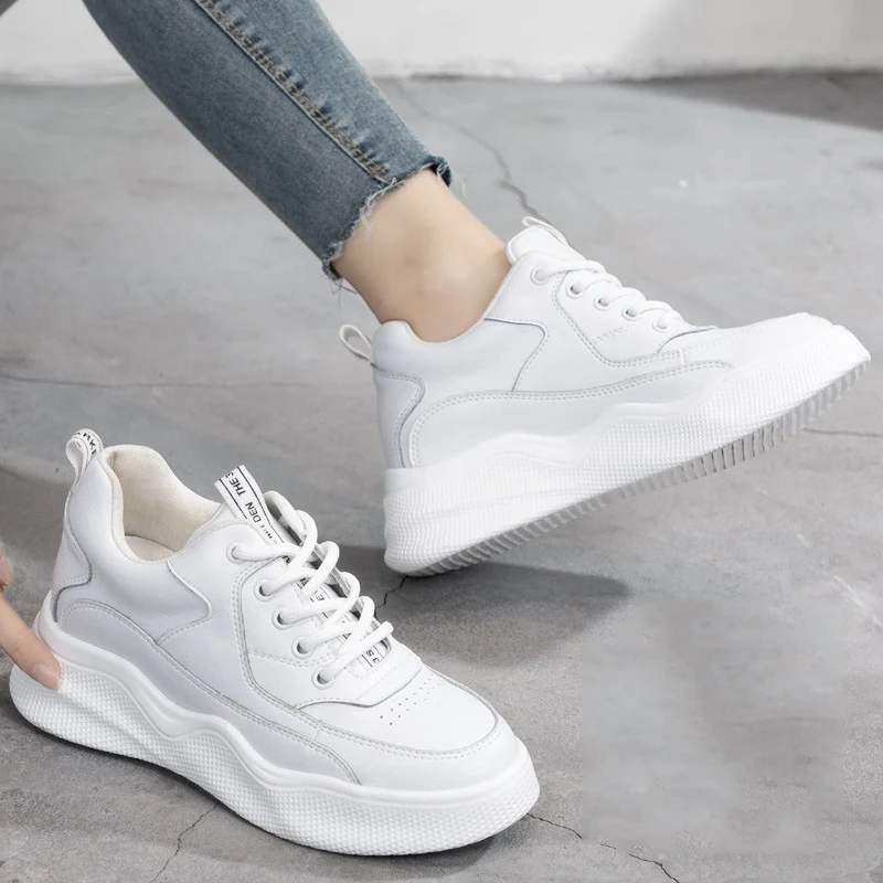 Женские кроссовки на платформе CXJYWMJL, увеличенные на 7 см, осенняя маленькая белая обувь, женская зимняя спортивная обувь на толстой вулканизированной подошве