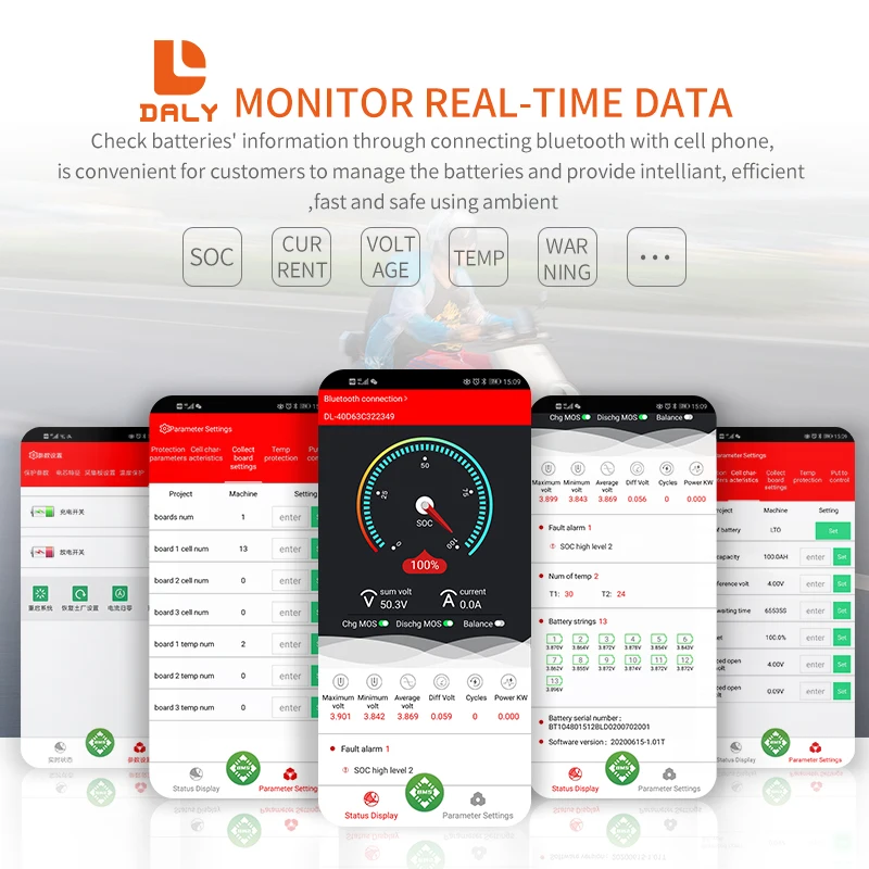 Умные BMS включают: контроль температуры NTC (обычная конфигурация), модуль bluetooth, кабель USB-UART, кабель для инструментов USB-RS485, модуль CANbus