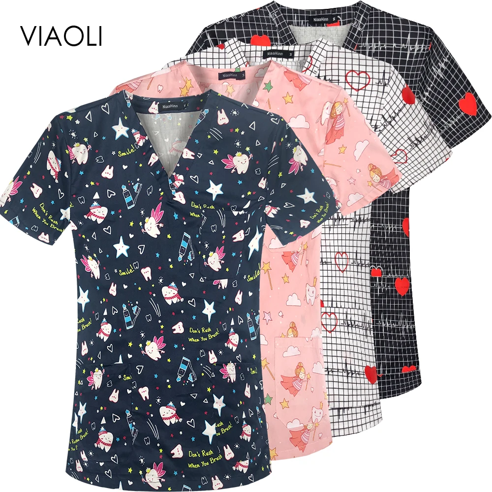 Униформа медсестры, униформа унисекс с мультяшным принтом и V-образ...