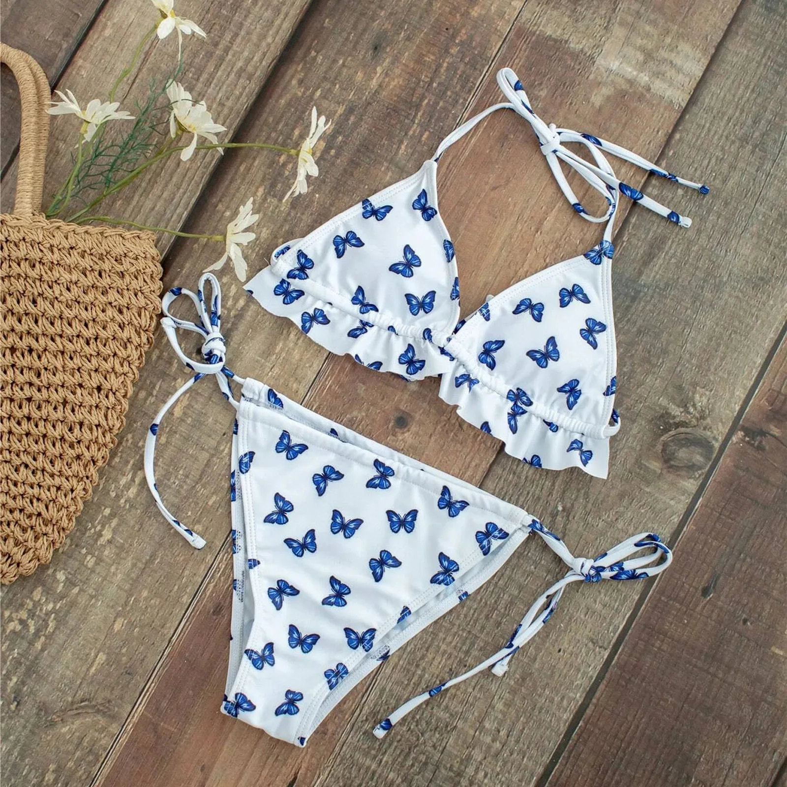 Женский раздельный купальник, 2 штуки, с пуш-ап, с принтом бабочек, бикини, пляжная одежда, купальники с высокой талией, 2021
