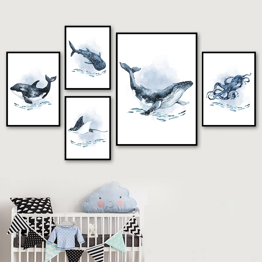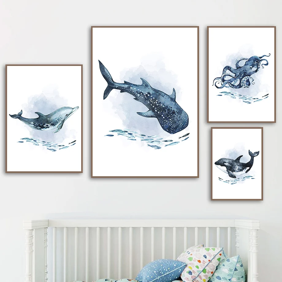 Осьминог кит дельфин Медуза Морская жизнь настенная Картина на холс...