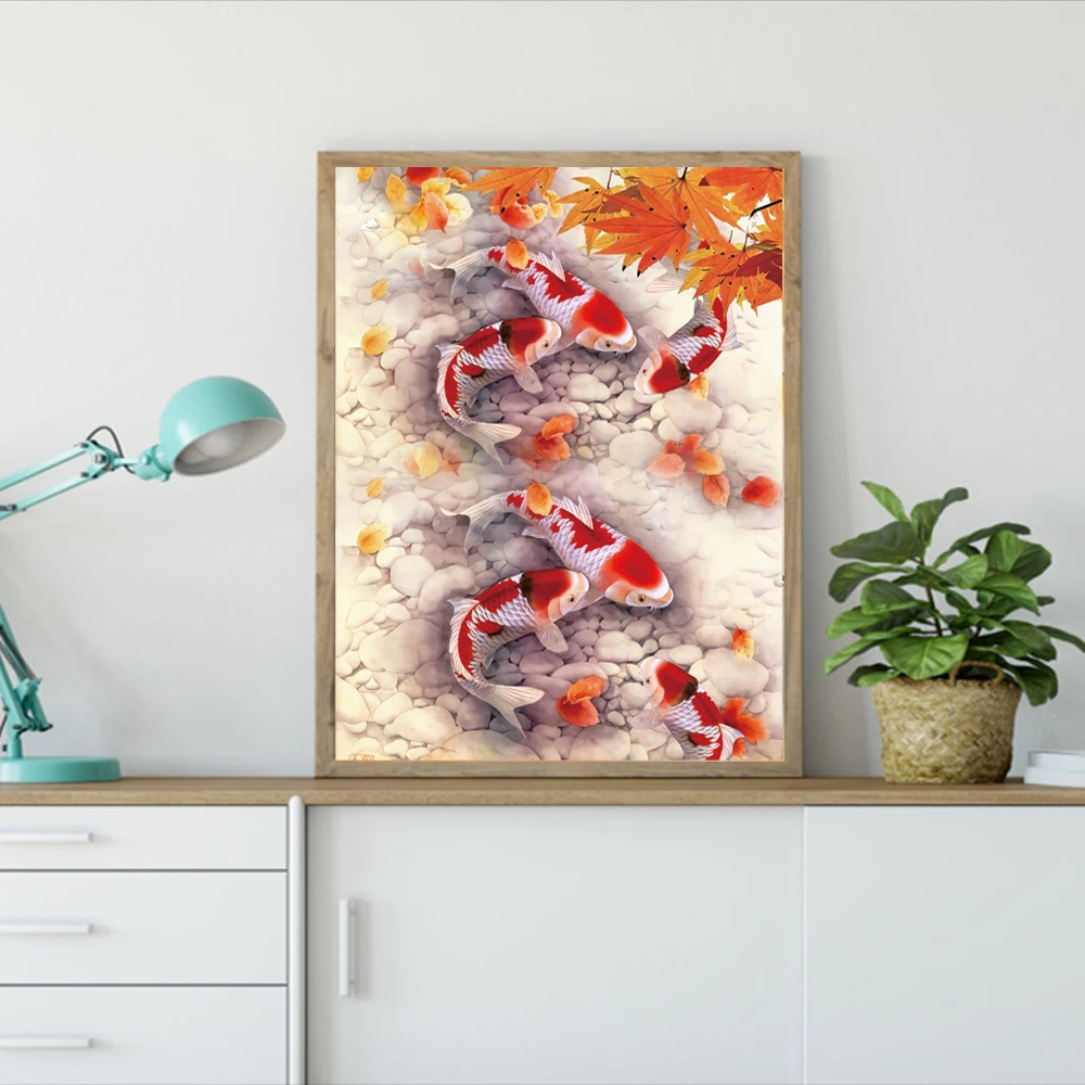 Алмазная живопись 5D, круглые животные, рыбы, используемые для изготовления мозаики, украшение для дома, искусство